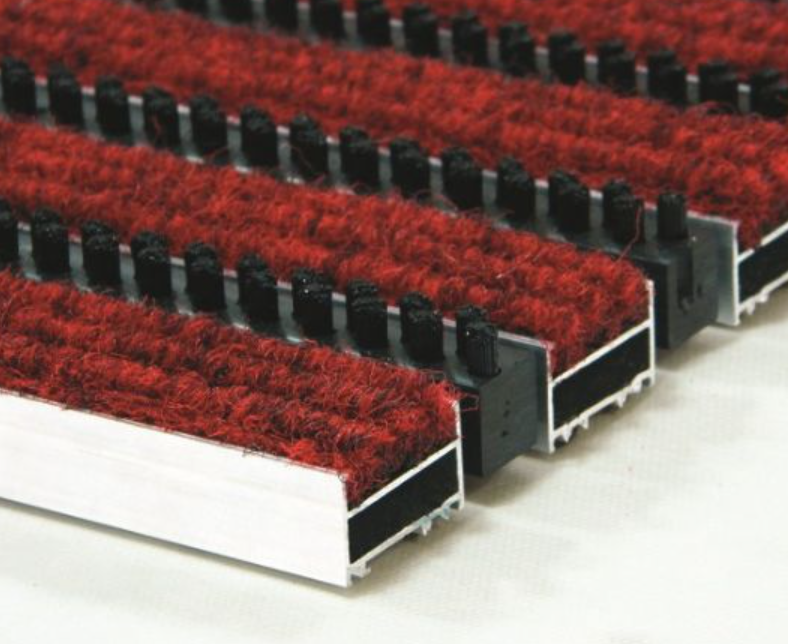 TH-1087 22mm Alüminyum Kırmızı Halı+Tekli Kaset Fırçalı Paspas